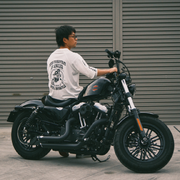 ARAKA KAZEGIは性別・着用シーン問わず着用いただけるシンプルな無地のロンTとクールなイラストが入ったAMC ver. (ARAKA MotorCycle Club)の2種類のデザインがあります。