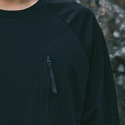 ロンTに胸ポケットが付いている商品は多い。ただ、意外と使わないですよね。マスクや鍵、ハンカチまで現代の毎日において胸ポケットが活躍するシーンはたくさんあるはずなのになぜ使わないのでしょうか。それは落ちやすく、入れたところでなくなるリスクを考えてしまうからではないか。というところから、ARAKAではしっかりファスナーをつけました。存分に胸ポケットのありがたみに浸ってください。もう、ファスナー付き胸ポケットなしの生活には戻れないでしょう。